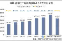 华经产业研究院数据显示:2023年中国纺织机械及其零件出口金额为454253.5万美元,相比2022年同期减少了99492万美元,同比下降16.6%。 分月度来看,2023年中国纺织机械及其零件出口金额于3月达到峰值,为46429.7万美元,相比2022年同期增长了1748.3万美元,同比增长4.2%,去年同期出...